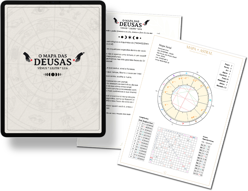 O Mapa das Deusas é uma leitura astrológica personalizada que foca em três arquétipos femininos fundamentais: Lua, Vênus e Lilith.